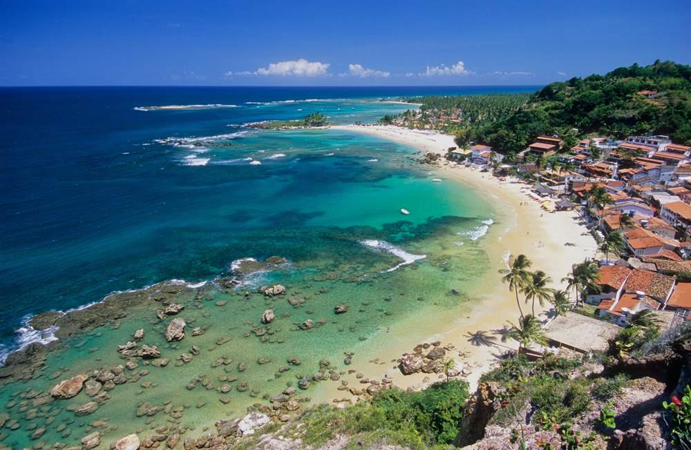 Já Arraial d'Ajuda, em Porto Seguro, é conhecida como uma das melhores praias do litoral brasileiro. A integração entre as belezas naturais e a arquitetura planejada para conquistar os turistas é um dos pontos altos da região. Lindas praias com águas cristalinas e uma areia bem clara conquistam todos que visitam a região.