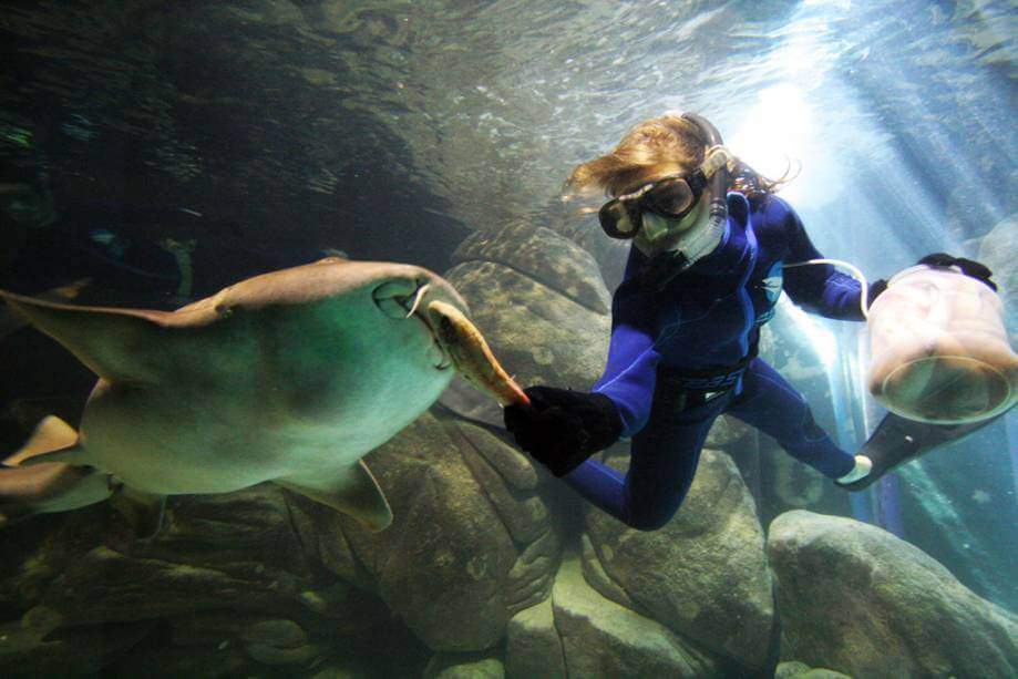 De pequenos peixes aos grandes predadores do oceano, os tubarões, o aquário reúne uma variedade imensa de animais, como pinguins, jacarés e cobras, além de conter também belos corais.